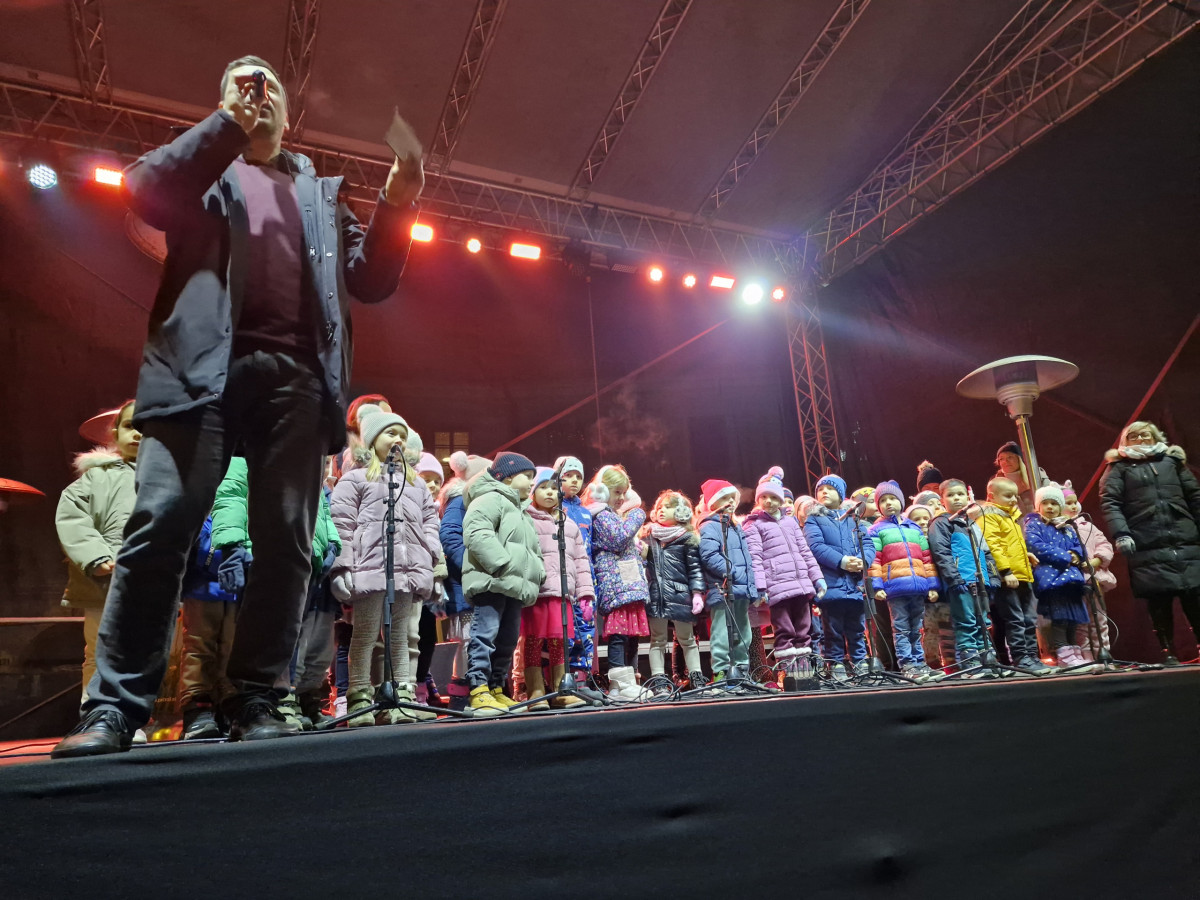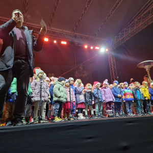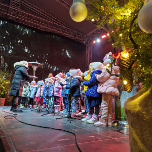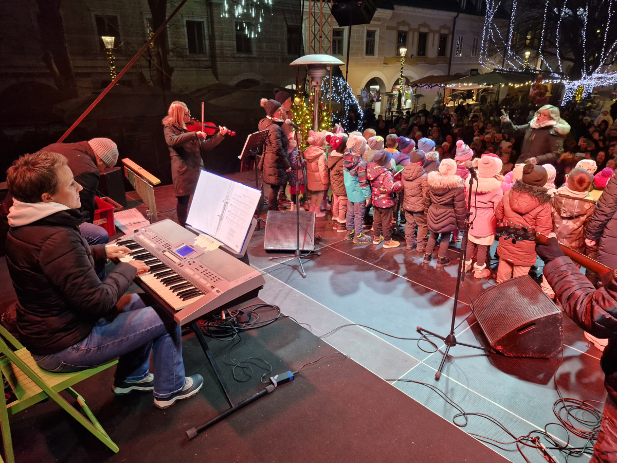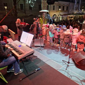 V decembrskem večeru, ko mesto diha z adventnim utripom, so na trg prinesli glasbo, smeh in iskreno otroško radost ter obiskovalcem pričarali nepozabne trenutke skupnega doživetja. Na odru sta se predstavila Cicizborček, v katerem so zapeli najmlajši, in Cicibend, ki ga sestavljajo zaposleni vrtca. Otroški glasovi so s svojo nežnostjo in pristnostjo ogreli srca zbranih, medtem ko so izkušnje, glasbeno znanje in predanost zaposlenih dodali nastopu posebno globino in energijo. Vsaka zapeta pesem je odražala veselje do glasbe, medsebojno povezanost ter trud, vložen v skupno ustvarjanje.