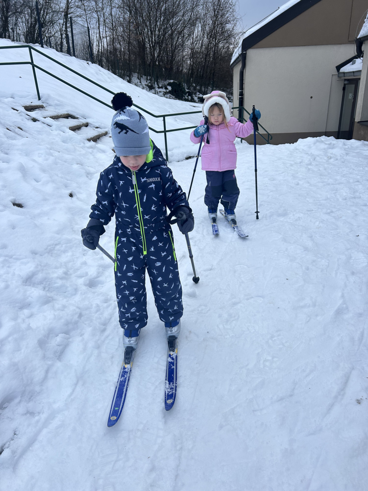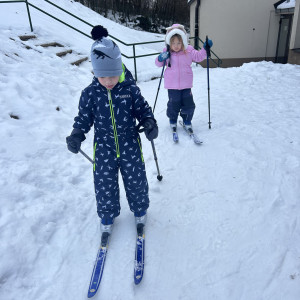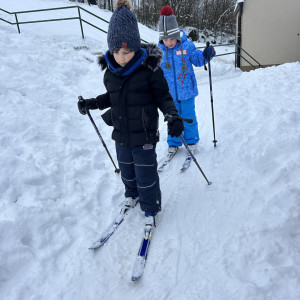 Ko smo končno dočakali snežno pošiljko, smo izziv preizkusili še na igrišču ob telovadnici. Obuvanje in pripenjanje smuči je bilo sprva zahtevno, a s potrpežljivostjo je uspelo vsem. Navdušenje otrok, ki so govorili: »Všeč mi je, da smučam« in »Lahko še en krog«, je bilo najlepša nagrada. Marsikateri je tako dobil svojo prvo izkušnjo s smučmi in ponosno staršem razložil, da so v vrtcu »smučali«. Zdaj že nestrpno čakamo novo pošiljko snega, da bomo znanje še nadgradili.